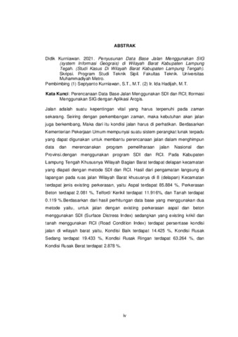 KURNIAWAN, DIDIK (2022) PENYUSUNAN DATA BASE JALAN MENGGUNAKAN SIG (SISTEM INFORMASI GEOGRAFIS) DI WILAYAH BARAT KABUPATEN LAMPUNG TENGAH PROVINSI LAMPUNG. Skripsi (S1) thesis, Universitas Muhammadiyah Metro.